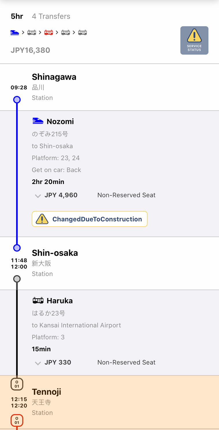 I used the Japan Navigation phone app to figure out this route, and you can use it too, for choosing your actual date and time of departure, and also for finding the easiest way to get to Shinagawa Station from where you are. Here’s where to get the app and how to use it, and here’s how to buy and use a Japanese transit card.