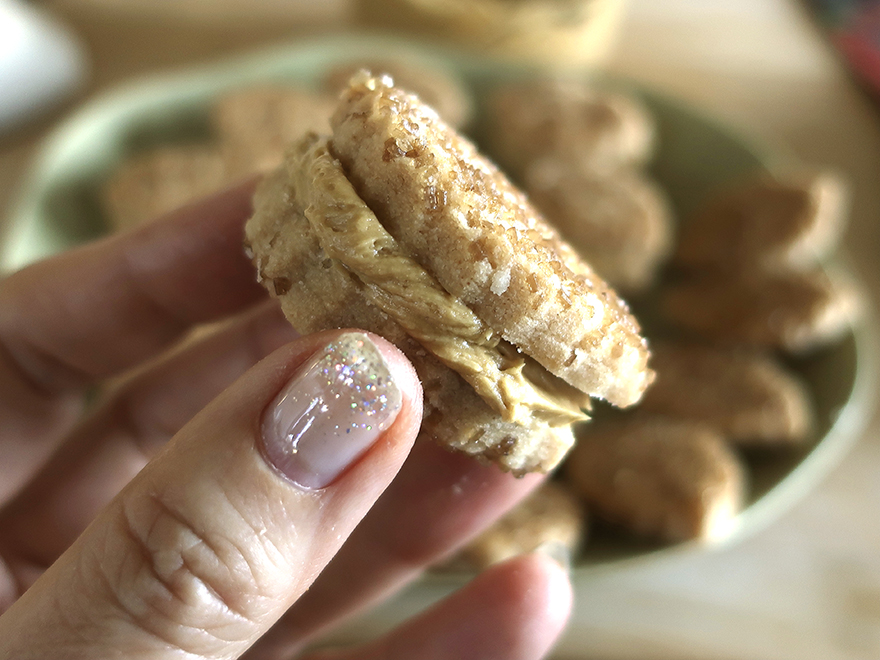 ‘Tis the season for cozy pleasures, so how about a sweet holiday treat with a delightful Japanese twist? These buttery shortbread cookies have a satisfying nutty flavor that comes from the Japanese roasted soybean flour known as kinako, and they’re topped with a sparkly crunch of turbinado sugar. Sandwich them together with Okinawan black sugar-flavored buttercream and discover a tasty new take on an old tradition!