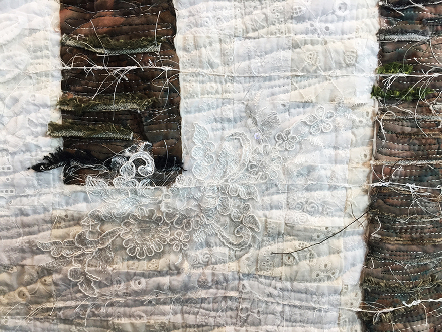 This gorgeously appliqued study of tree trunks in a snowstorm…