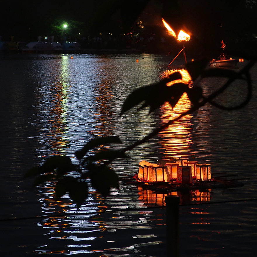 There are many toro nagashi ceremonies around Japan in mid-August. This one at the Shinobazu Pond is the earliest one in Tokyo, but the biggest one happens a little later, where anyone can buy a lantern for ¥1500 and launch it into the Sumida River at the Sumida River Park.