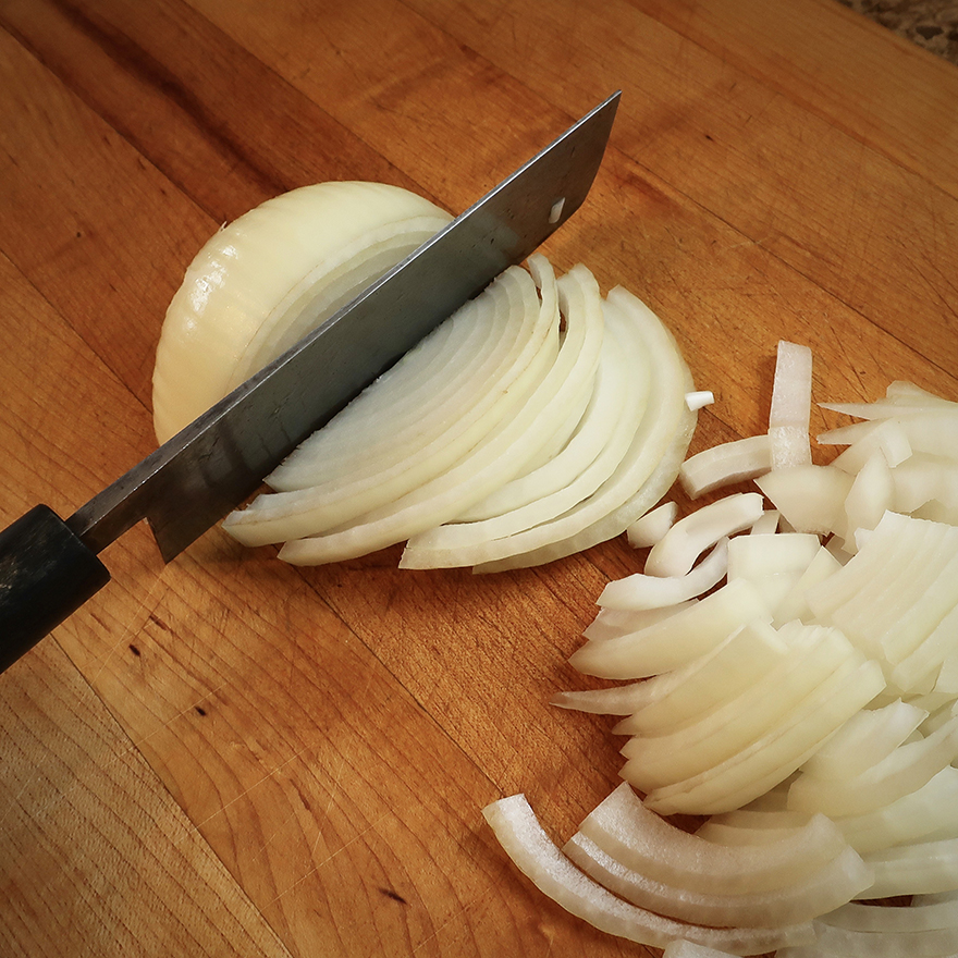 Slice pork into 1/2″ thick (1.5 cm) rounds, then each round into thin slices.