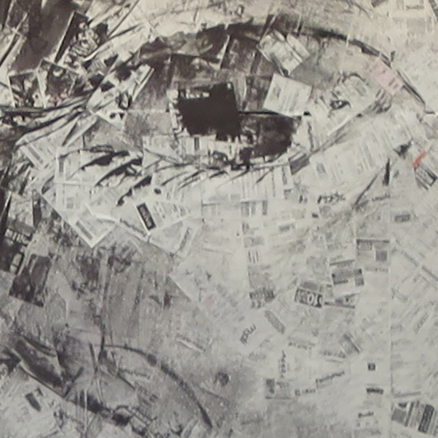 And muralists are assigned blank walls between the booths to compete for top honors in creating a larger than life piece of art over the course of the event. This one is a collage made from thousands of snippets of printed paper…