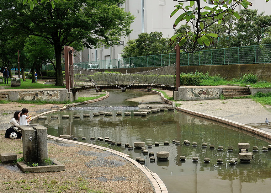 This fountain is in Asukayama Park, near Oji Station, but it’s just the beginning of the water features designed for summertime wading!