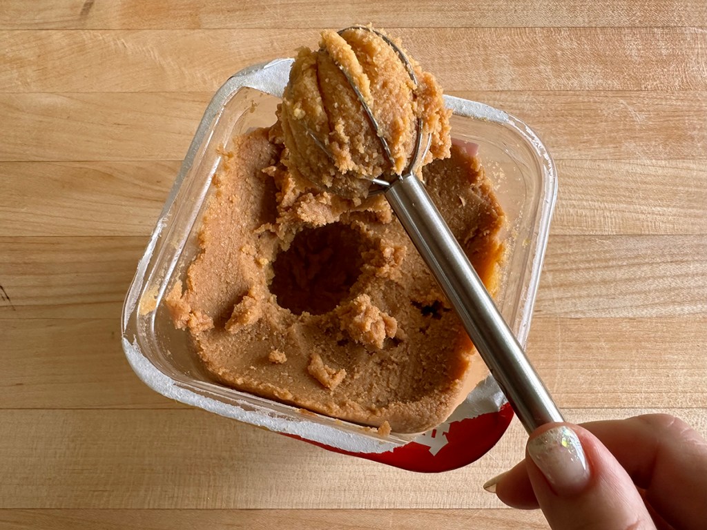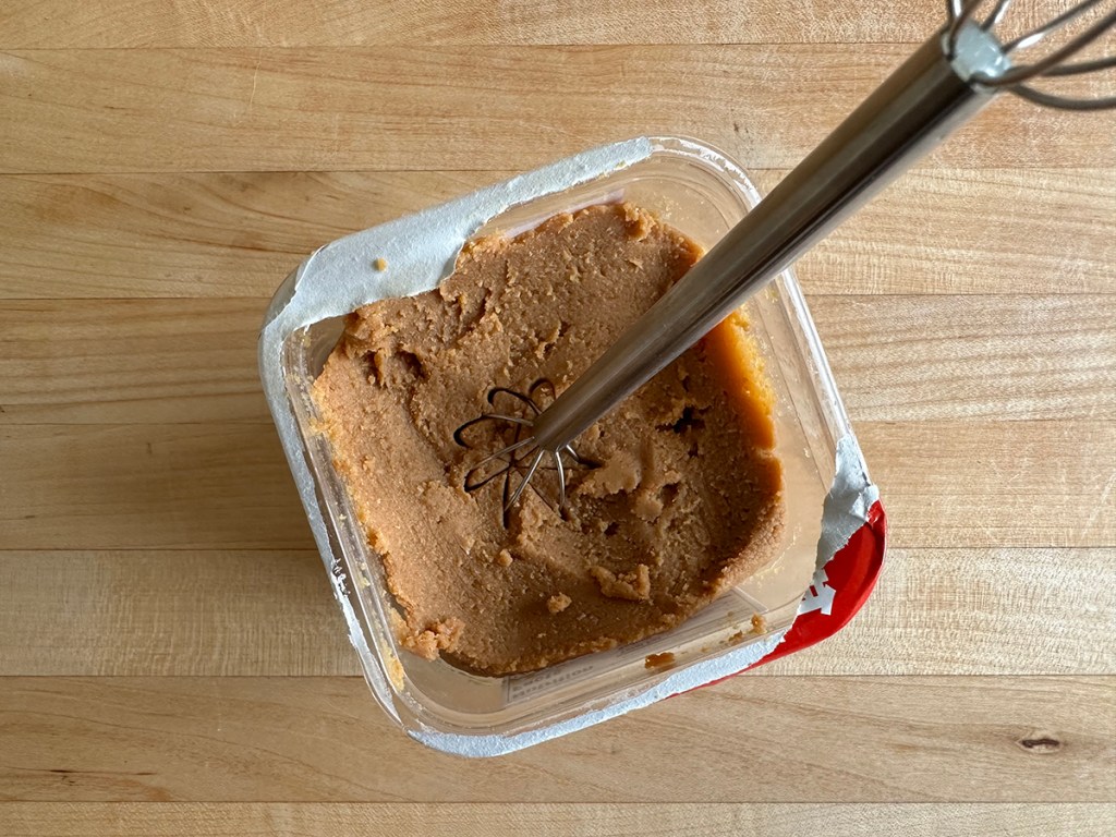 And what does a miso muddler do? Well, first, it measures something that’s a huge pain to measure. Miso is the peanut butter of Japanese ingredients (i.e. you’re doomed to getting it all over your fingers as you push it from the measuring spoon) but look how easy it is to measure out two tablespoons with the big end of this handy tool!