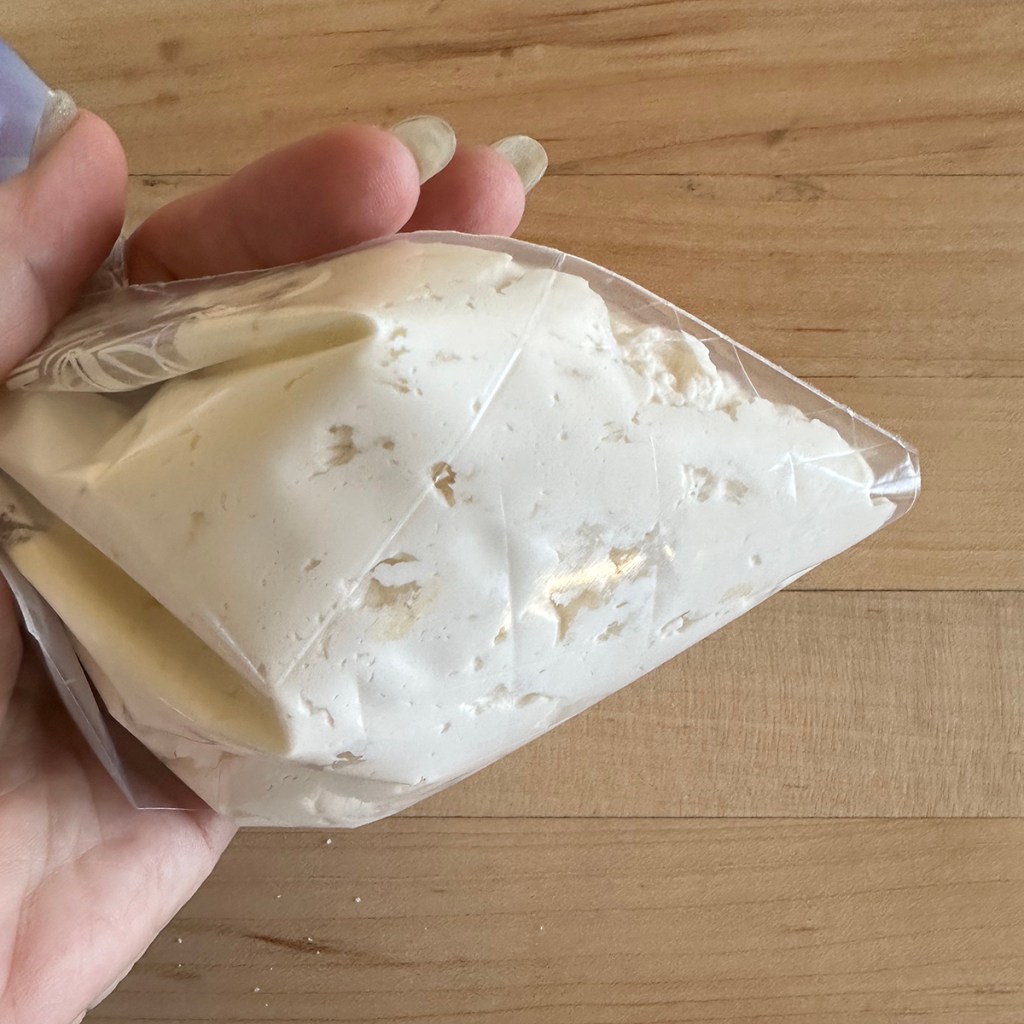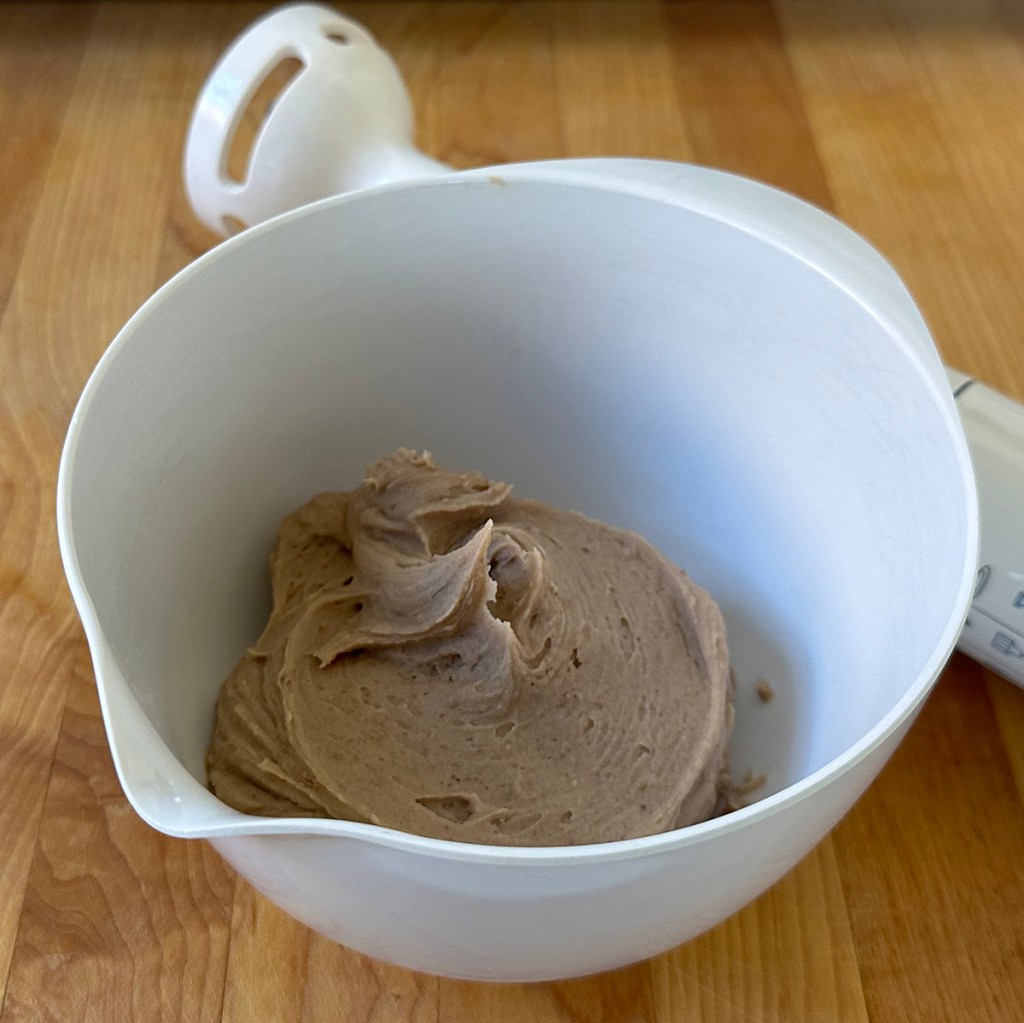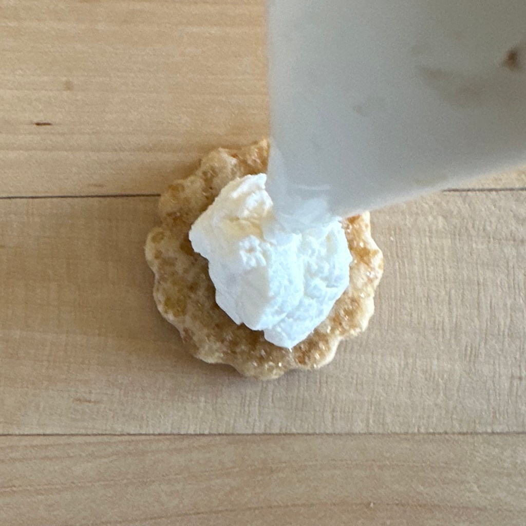 Twist the baggie above the cream so you can squeeze it out, and pipe it onto the center of the cookie bases, leaving cookie showing around the edges.
