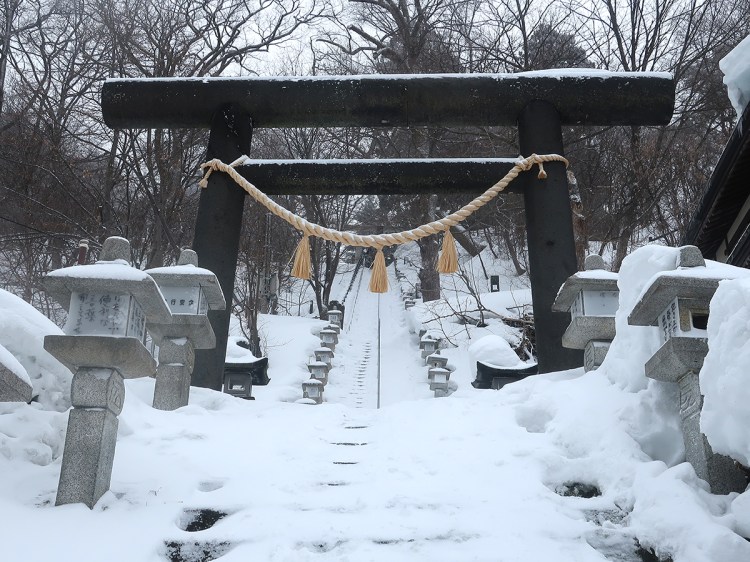 And there’s nothing to stop us exploring the town while we wait, so let’s stop at the local shrine first and ask the local kami-sama to give us a wee break in the weather so we can see the snow monsters…