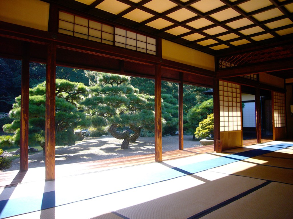 while viewing the garden from a whole new perspective. In May and June, this airy tearoom is opened up on all sides to welcome the warm spring air and encourage contemplation of the artfully composed rocks and trees…