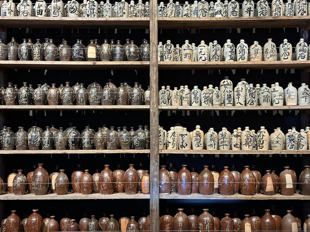 The final room in the “Afro-Mingei” exhibition highlights the shared thread that beauty and value are not defined by expense or rarity. This stunning wall displays binbō-tokkuri, which are the small flasks people who were too poor to buy a whole bottle of sake would take to the brewer to purchase amounts they could afford.