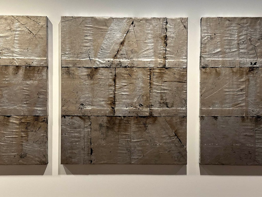 Like the original Mingei artists, Gates elevates everyday things to high art by drawing our attention to the beauty in commonplace objects and materials we usually ignore. This series, for example, was made with roofing materials and construction processes.