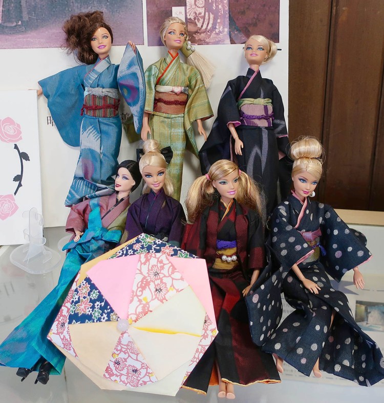 And as a foreigner who loves to wear kimonos—especially Meisen kimonos—I found this display of Barbies dressed in Meisen style both cheering and heartwarming!