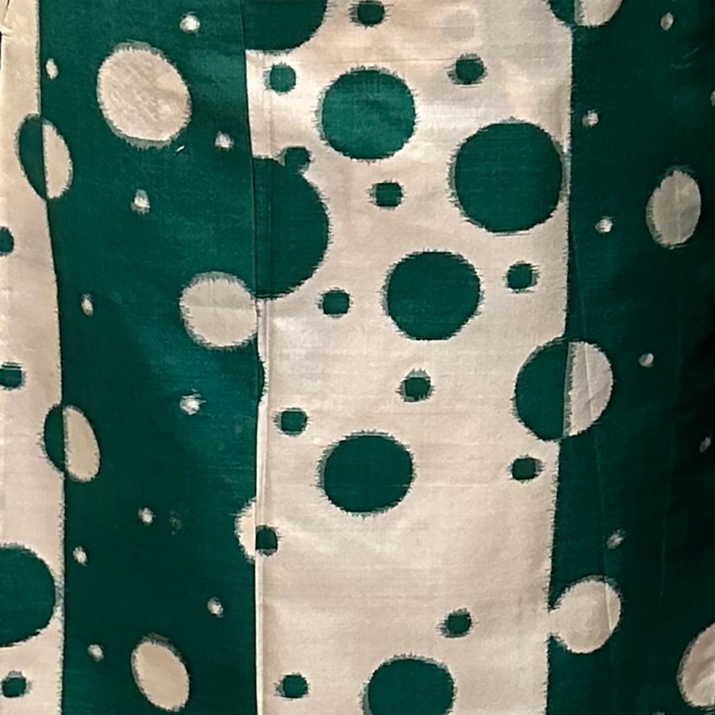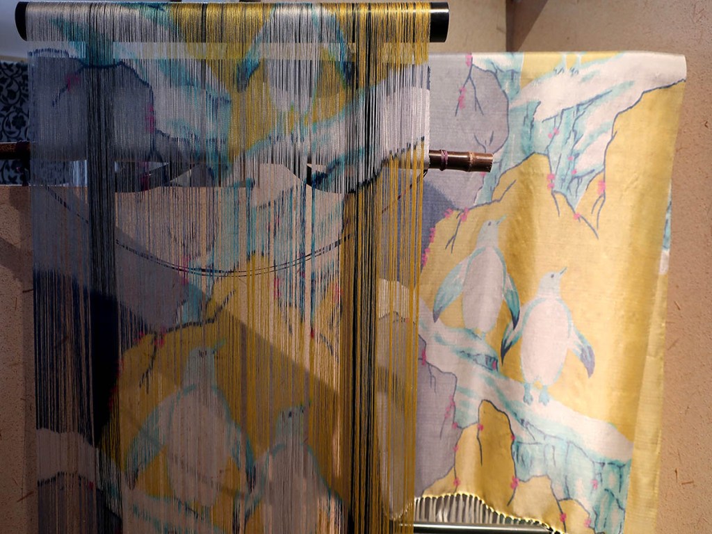 The first thing that sets Meisen silk apart from all kimono fabrics that went before is the distinctive—and highly prized—”blurry” outlines that come from dyeing the pattern into the thread before weaving it