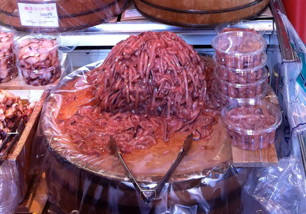 **O-tsumami are not always marinated squid guts (so don’t decide to shun all alcoholic beverages in Japan for that reason) but they are the Japanese food version of Russian roulette. You do not get to choose or refuse (or refuse to pay for) the little appetizer they bring you with your drink, and I have been served squid guts often enough (especially in summertime, which I suspect is <shudder> squid guts season) that I am now okay with being the kind of weenie-ish foreigner who leaves them untouched.