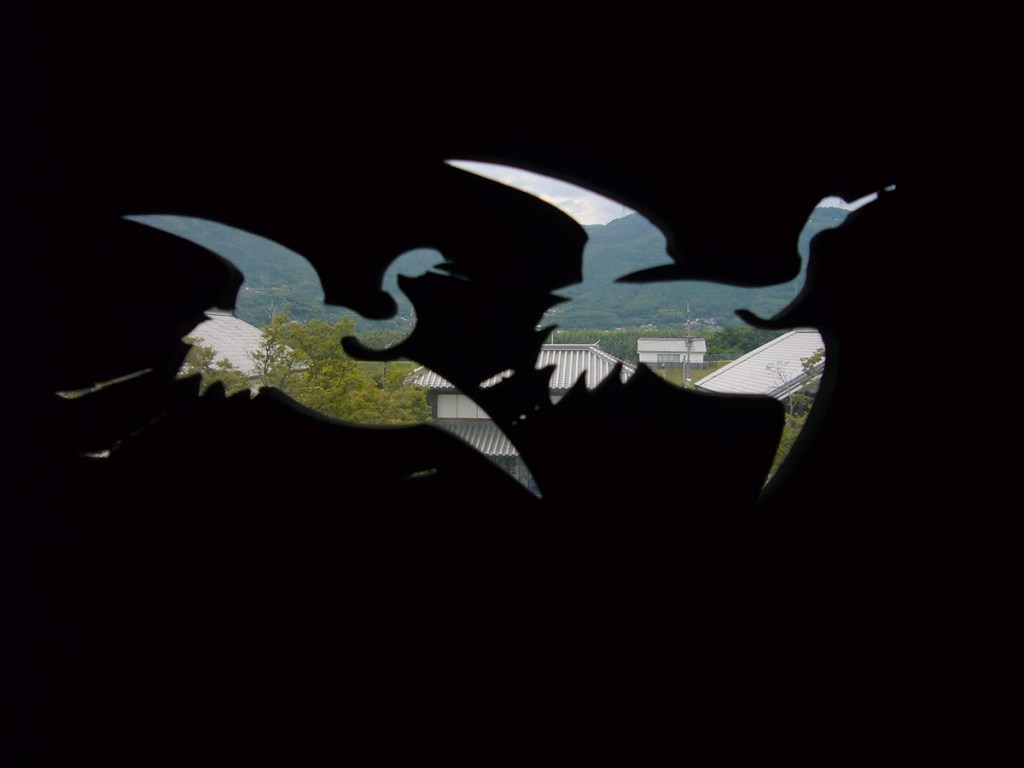 through charming windows with flying crane cutouts.