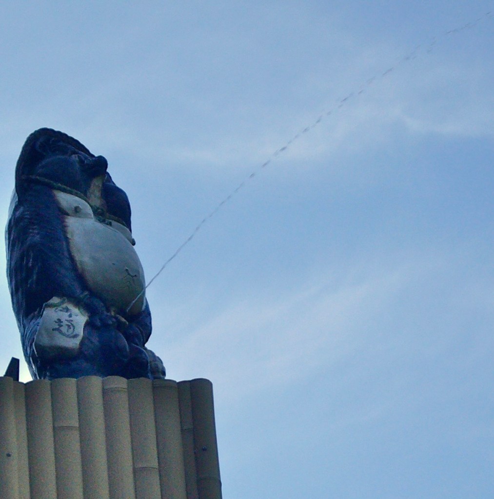 and catch a tanuki peeing off the roof…