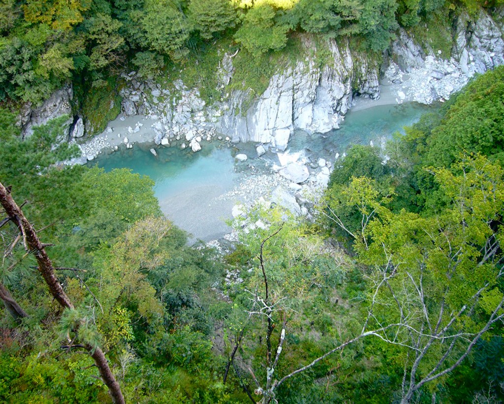 Forty-five meters long and two meters wide (with gaps underfoot that would make Indiana Jones think twice), the Kazurabashi Vine Bridge spans a gorge in the Iya Valley fourteen meters (46 ft) above a rushing river. It’s made from kiwi vines, and does not disappoint when it comes to delivering heart-racing swaying with every step and glimpses between your feet of rushing water that is much too far below for comfort.