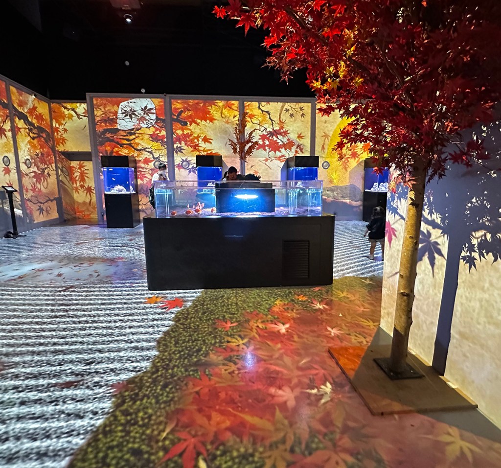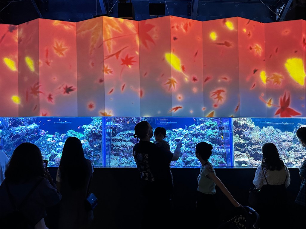You don’t have to brave the elements to see the most spectacular autumn leaves in Japan anymore! Shinagawa Aqua Park teams up with the Naked, Inc. projection mapping artists to conjure up new immersive delights in every season, but none are more spectacular than the fabulous fall fantasy swirling around Aqua Park’s spectacular collection of tropical fish right now.