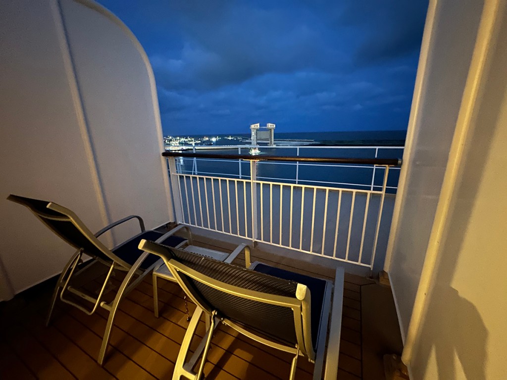 with it’s own private balcony to watch the lights on shore go by
