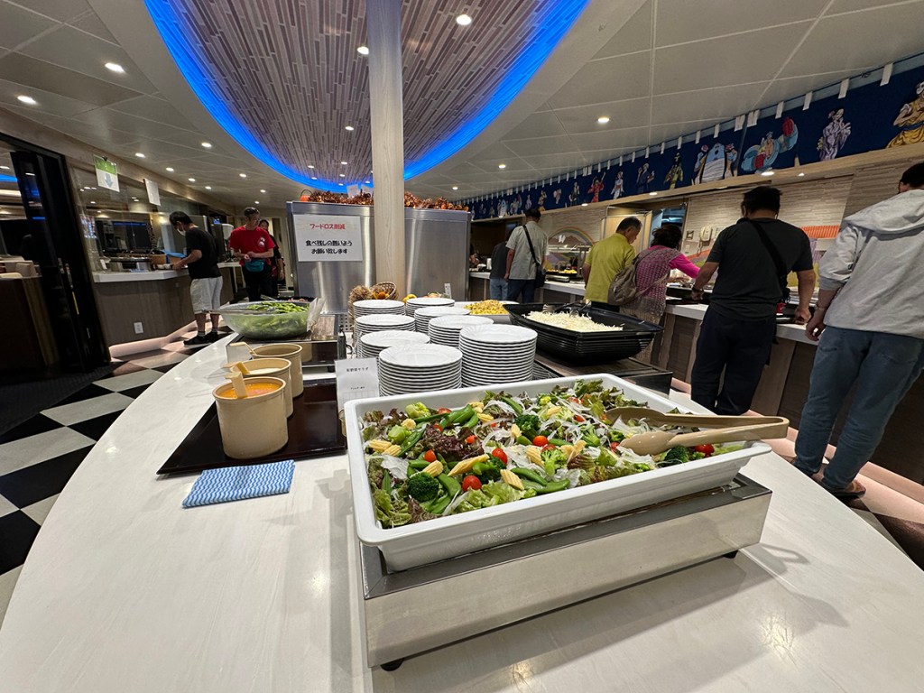 Buffet restaurants are called viking in Japanese, because the barbaric custom of scooping heaps of food from shared platters onto a single big plate is anything but civilized and Japanese, but it is an efficient way to serve a lot of people with minimum crew.