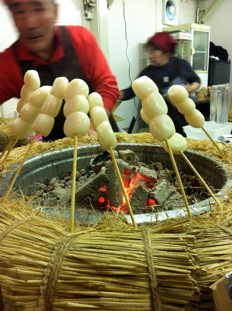 From the skewers of toasted rice cakes dripping with miso or soy sauce that are sold at many outdoor events in winter…