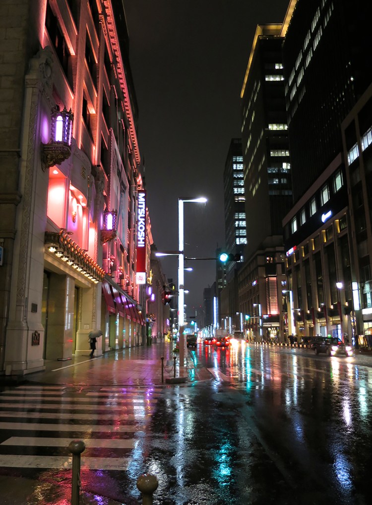 But you don’t have to spend money to enjoy the enhanced hanami experience! The fancy Nihonbashi shopping district puts on its party clothes at night, with the Mitsukoshi flagship store decked out in pink…