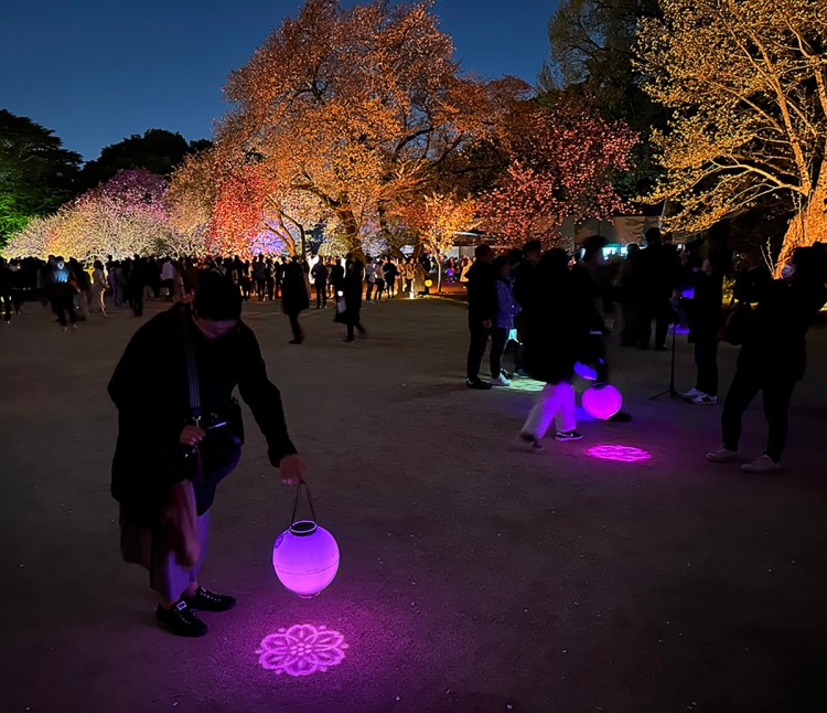 but offered additional fun experiences, like lanterns that were free for every ticketholder to use as they walked around, projecting cherry blossom patterns at their feet.