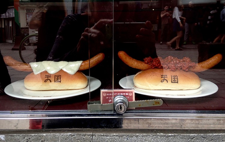 And the hot dogs. Why are hot dogs in Japan so much more unseemly than sausages elsewhere? Whether they’re slathered in truffle sauce, guacamole or relish, don’t these look rather inappropriately glad to see you?