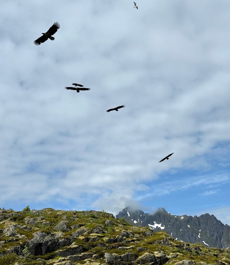And Norwegians aren’t the only ones after the cod. Just offshore, flocks of fish eagles patrol all day long, diving for dinner and scooping it out of the water with their wicked sharp talons. It’s hard to see how big these bruisers are from the photo, but they’re the biggest birds in Europe, with a wingspan that’s a Viking-esque 6+ feet.