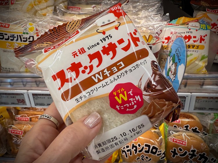 But this is Japan—why confine the almighty sandwich to main dishes? Behold the chocolate sandwich (yes, it’s two pieces of white bread with chocolate spread in between)…