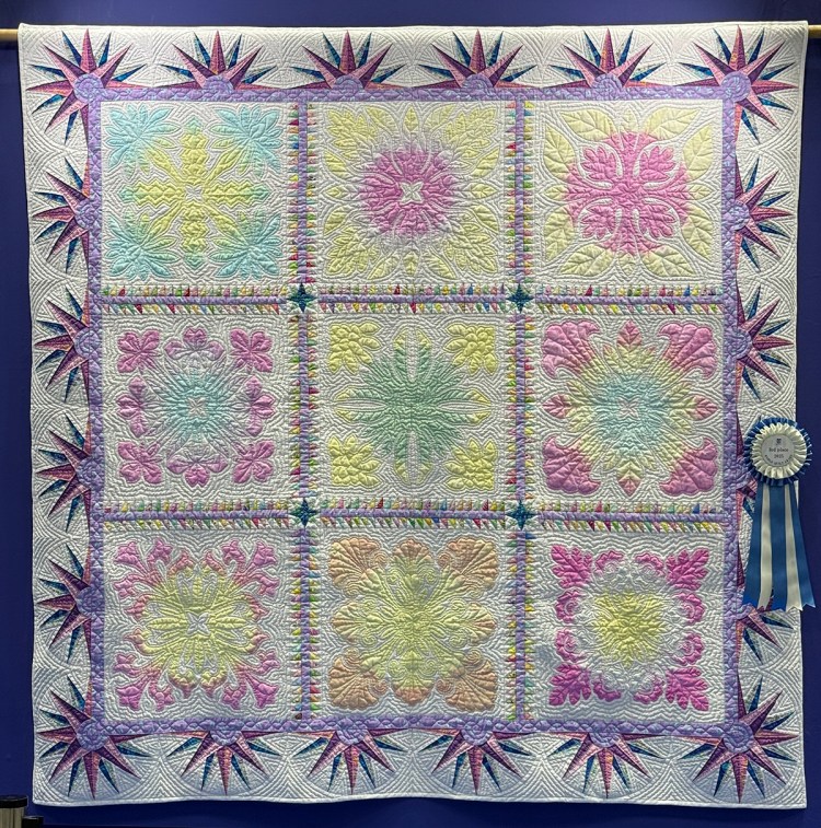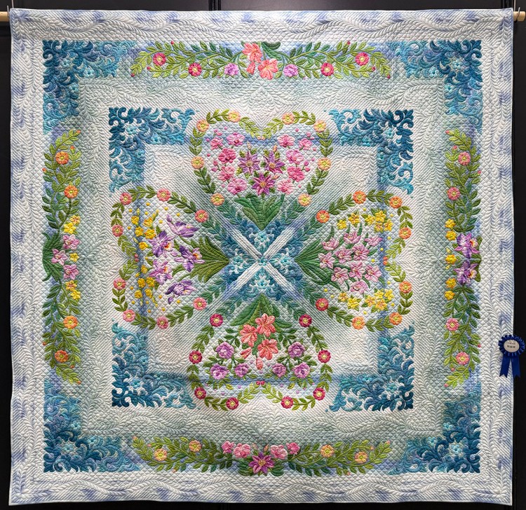Japan’s best international quilt show happens in Yokohama every November, and it absolutely boggles how every year it manages to become spectacular in new ways! This year, the number of quilts featuring multiple textile techniques—dyeing, applique, embroidery, beading & more—really exploded! It was so hard to edit down to only a few of my favorites, but I’ll try to show you a range of fabulousness that will make you say WOW, WOW, WOW.