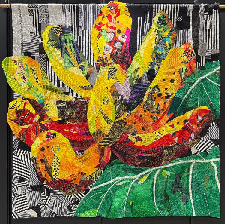 Appliqué, embroidery, netting, beading, dyeing…everything but the kitchen sink, but in a good way!