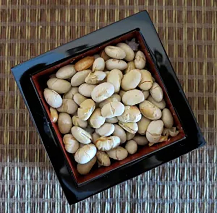 Soybeans, to be exact. Roasted ones. These are for throwing at the oldest male member of your family, who will be wearing a demon mask for the occasion. The demon must be pelted ferociously enough to drive him from the house, as you shout, “Demons out! Good luck in!” Save enough of the beans so you can eat as many as your age. This is not a hardship for five-year-olds, but 80-year-olds do not look forward to Setsubun. Plain roasted soybeans are never going to beat Doritos in the snack food wars.