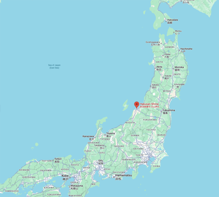 Here’s where Niigata’s Hakusan Shrine is: