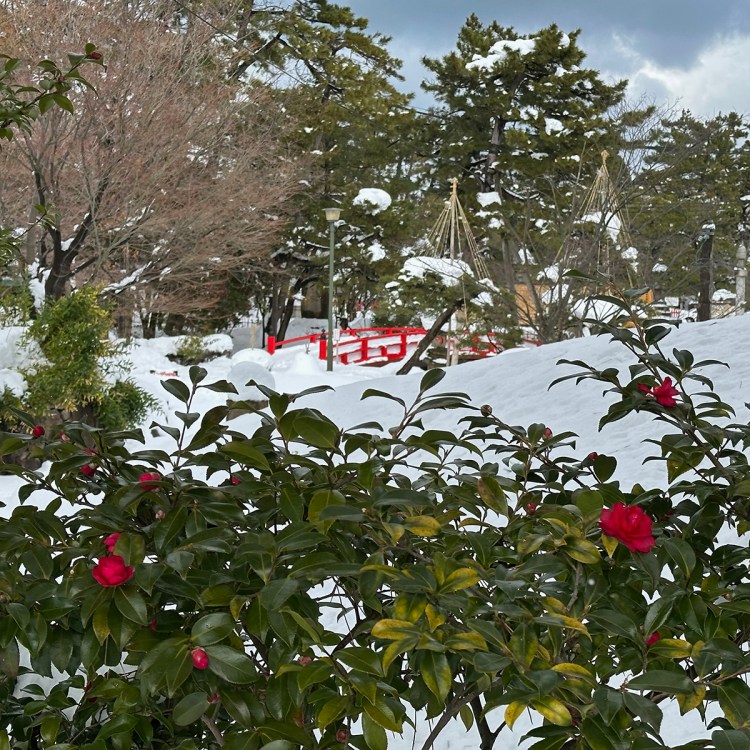 Red winter camellias pop their heads up even when there’s snow all around…