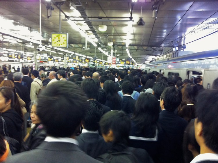 Japan is a crowded country. This is what a train platform looks like during rush hour.