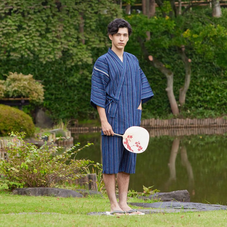 Women can always wear skirts and dresses—which are naturally cooler than pants—and the one men’s exception to the shorts rule is the traditional summer outfit known as jinbei. Note how long the shorts are, though: they make sure bare skin never touches a public chair, bench or subway seat.